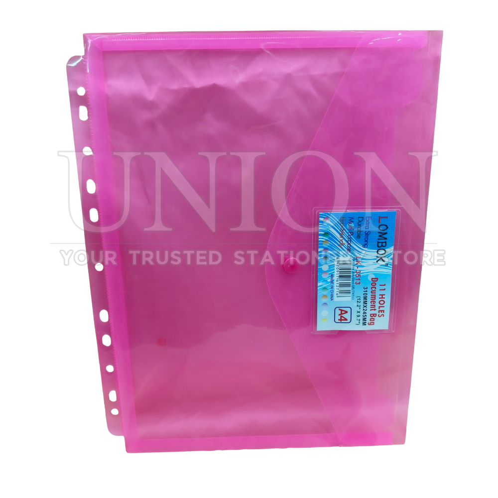 A4 folder with snap closure, lightweight, reusable, and binder-ready.