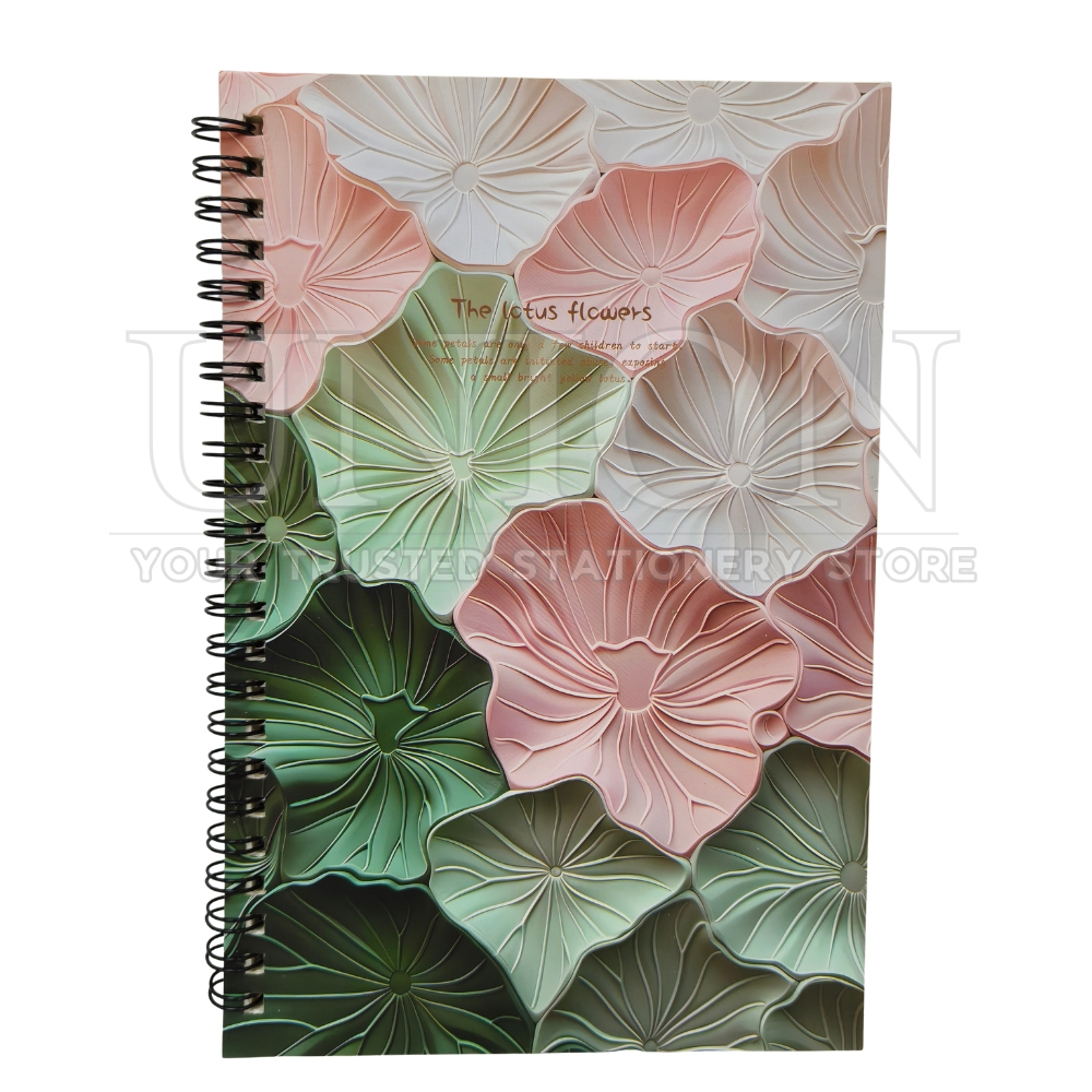 Spiral binding allows smooth page turning and flat lay writing.